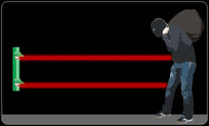 The roboguard is a stand alone, wireless automatic outdoor intruder security system using passive infrared sensor beams that detect movement up to 20 meters away in an 110° arc. Each guard has two sensors one on top and one at the bottom, each emitting 11 beams, a top and bottom beam have to be broken within half a second to trigger an alert. This effectively eliminates false alarms caused by dogs, birds and plants.